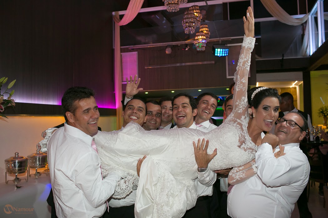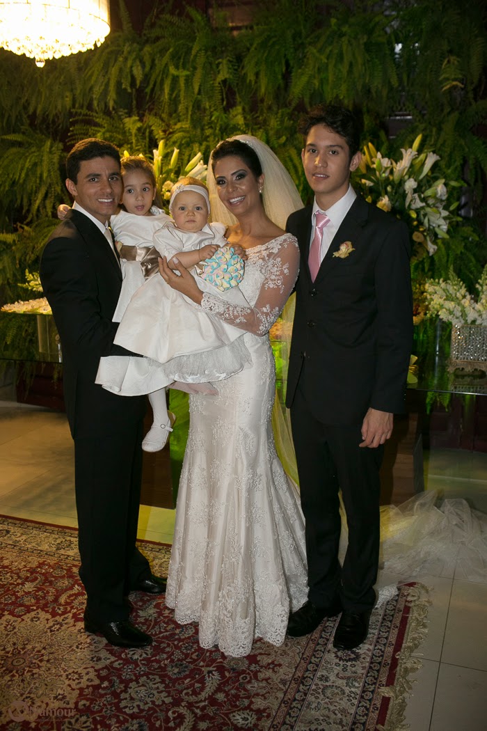 A NOIVA OPTOU POR UM MODELO SUPER DELICADO, DE MANGAS LONGAS E TODO COM APLICAÇÃO EM RENDAS, ENCANTANDO A TODOS.