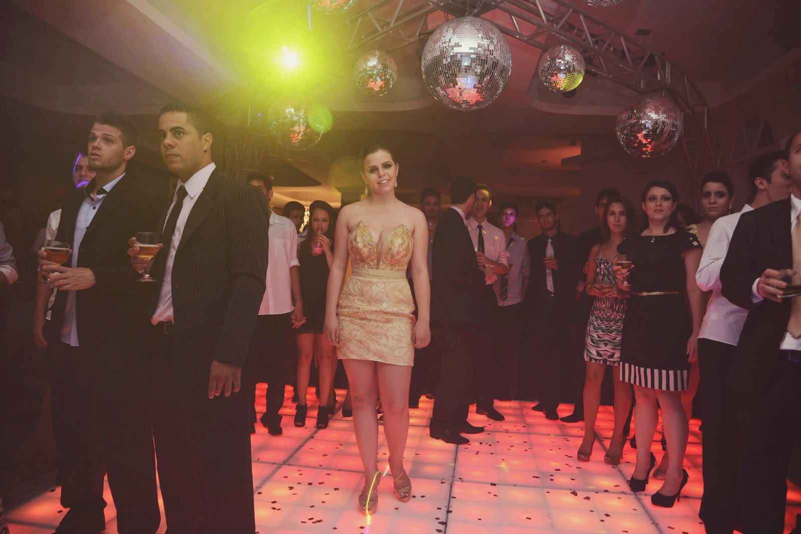 PARA A ENTRADA, ANA ELISA OPTOU POR UM LONGO VERDE GLÓRIA RABELLO, PARA A VALSA, UM LONGO DOURADO FEITO POR NOSSO ESTILISTA EDUARDO MALTA E, NA BOATE, UM CURTO DOURADO GLÓRIA RABELLO.