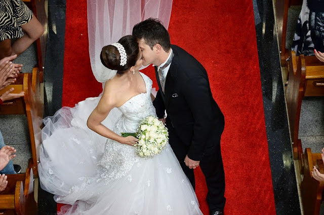ELA SE CASOU COM CARLOS EM UM MARAVILHOSO VESTIDO TOMARA QUE CAIA DA ZEPHORA ALTA COSTURA. UM MODELO CLÁSSICO E SUPER LUXUOSO, EM TULE TODO APLICADO DE RENDA.