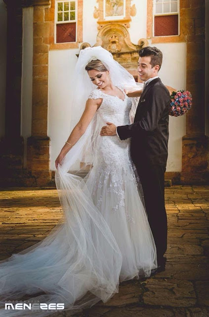 O CASAMENTO DE NOSSA NOIVA BRUNA ACONTECEU EM ABRIL, EM UMA CERIMÔNIA ENCANTADORA! BRUNA ESCOLHEU UM MODELO ZEPHORA ALTA COSTURA SEMI SEREIA, DECOTE V, COM APLICAÇÃO DE RENDA.