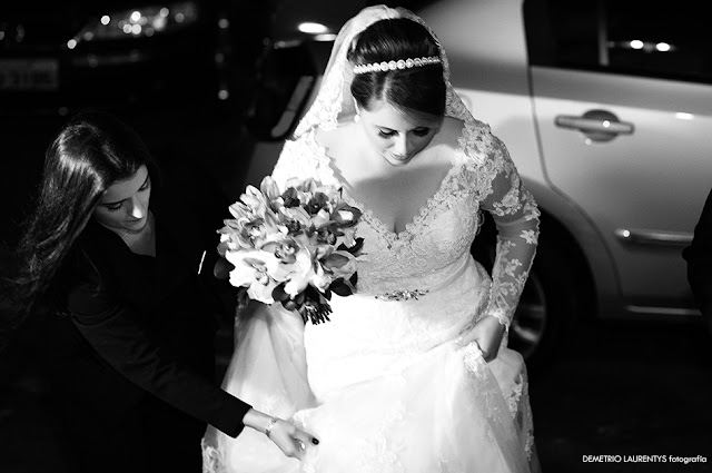 NOSSA NOIVA ESTAVA DIVINA, EM SEU VESTIDO SEMI SEREIA, DECOTE V, DE MANGAS EM RENDA.
