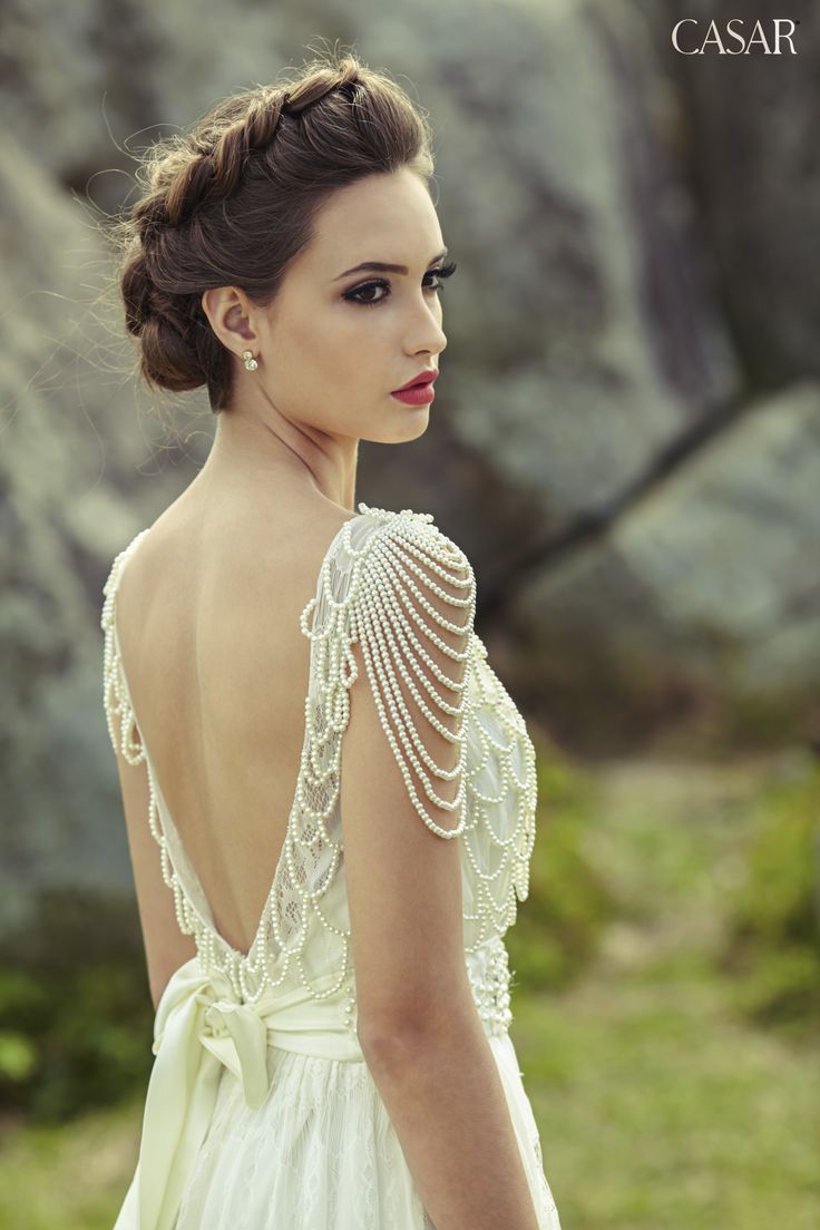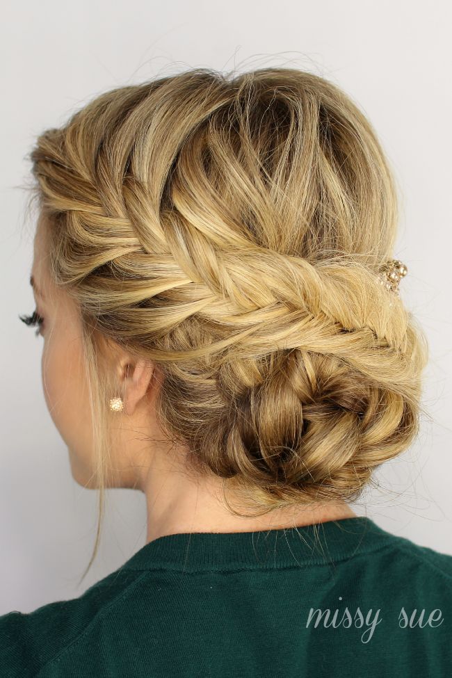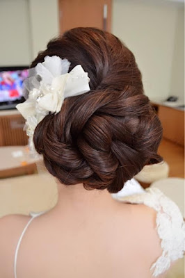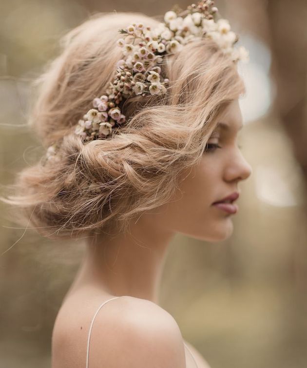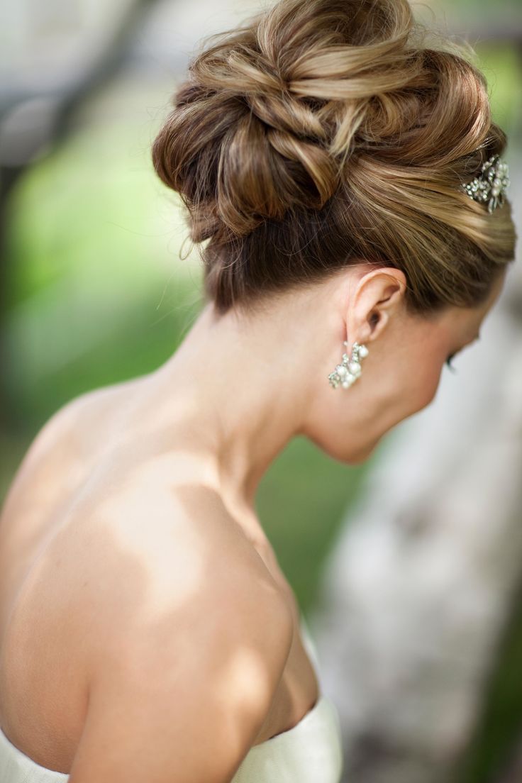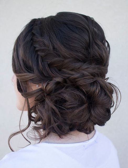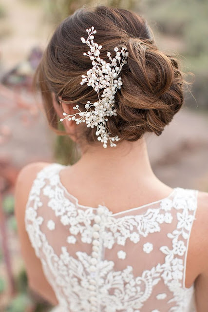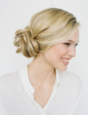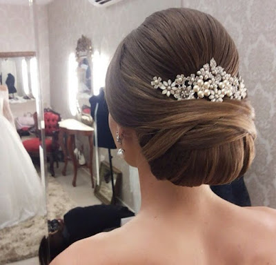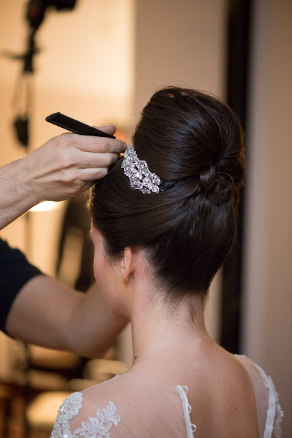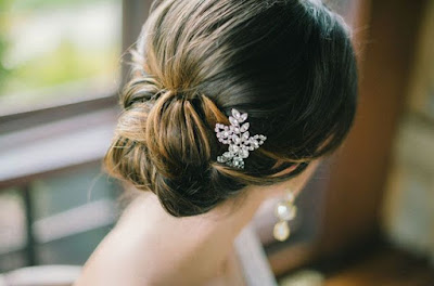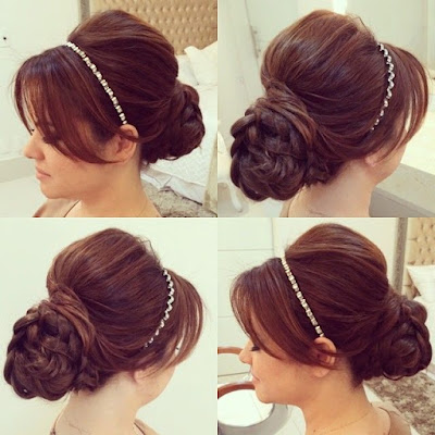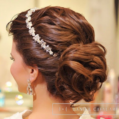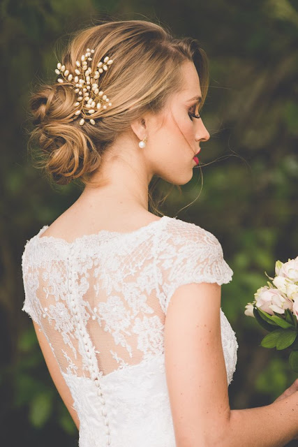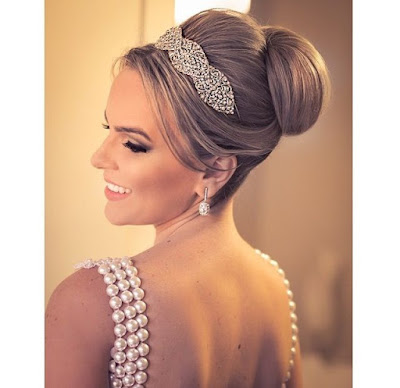 O coque bagunçado deixa o visual mais romântico e despojado. Perfeito para casamentos durante o dia e para as noivas que não se acostumam com o coque tradicional mas querem casar de cabelo preso.