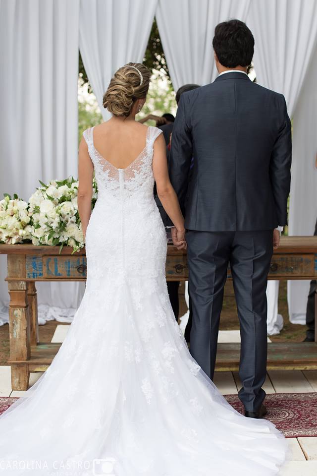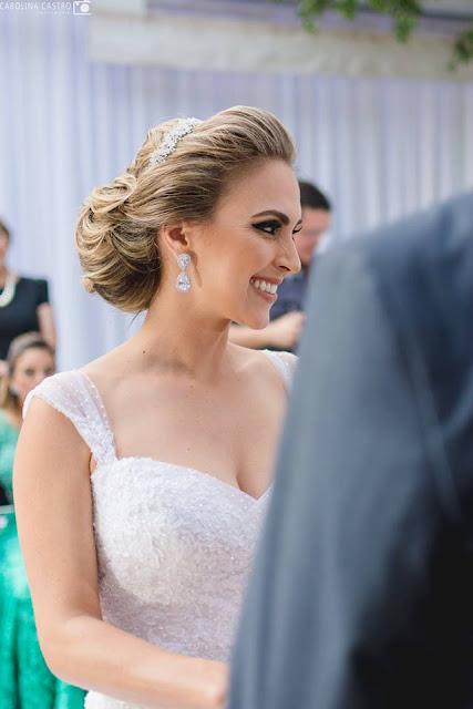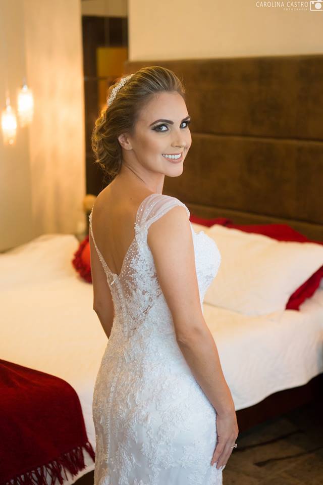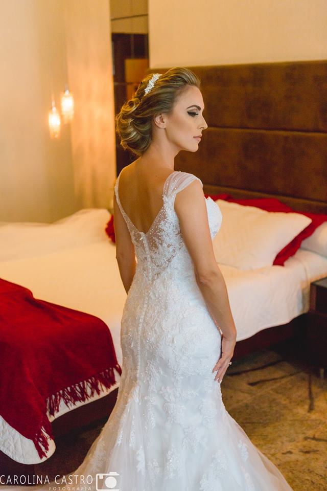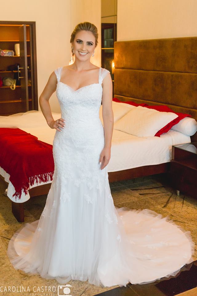 Nossa belissima noiva Rhariany escolheu na Zephora um vestido sereia da linha internacional para brilhar no grande dia que aconteceu no Espaço Casa Real! O vestido em tule com aplicações de renda tem decote nas costas e um bordado bastante delicado, combinando com a suavidade desta noivinha!
