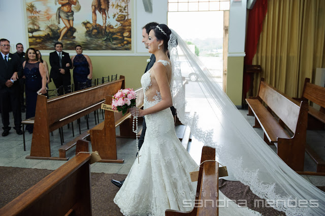 Sandra escolheu para este dia inesquecível um dos modelos de exclusividade global do diretor criativo Eduardo Malta para o Ateliê Zephora! O modelo desenvolvido com materiais exclusivos, tafetá de seda e tule francês rendado todo rebordado em cristais e perolas, digno de rainha!
