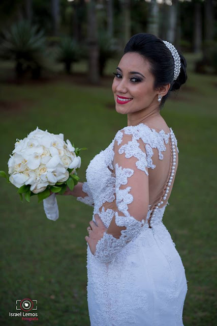 Jessica se casou com um luxuoso vestido de renda chantilly francesa rebordada em perolas e cristais desenvolvido pelo Ateliê Zephora! O vestido sereia abusa de transparencias sem perder a elegancia, valorizando as curvas da noiva!