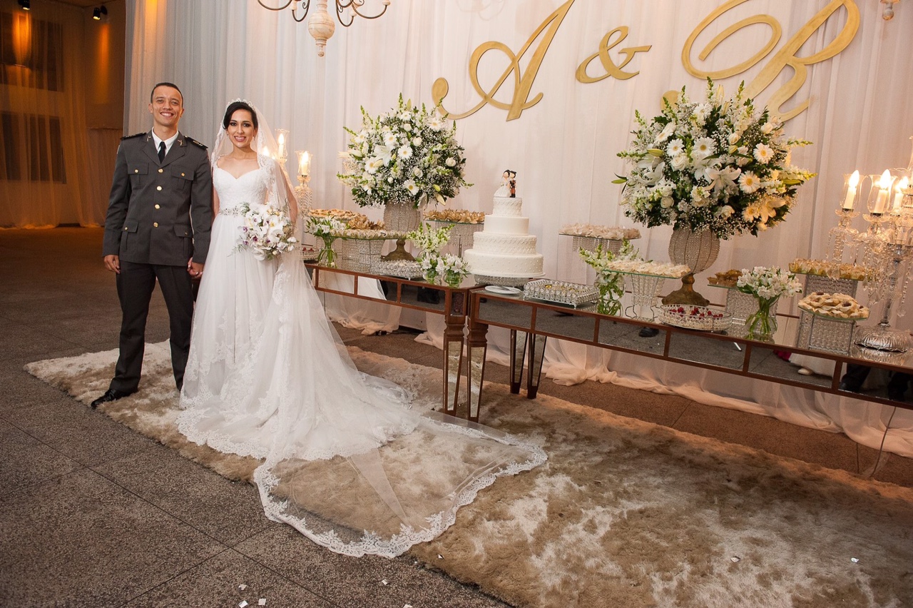 Ana Laura escolheu na Zephora um modelo tradicional de saia evasê, todo em tule frances e renda francesa! O cinto bordado em pedraria prata dá um acabamento charmoso no look que a noivinha escolheu para o dia mais especial de sua vida!