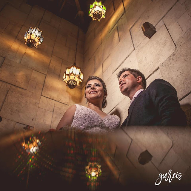 Nossa noiva Michelle escolheu um vestido da nossa linha internacional para brilhar no grande dia! O modelo é sereia, possui decote em ‘V’ na frente e nas costas valorizando a noivinha, foi construído em renda francesa branca, com bordado em pedraria prata e pérolas, um luxo!