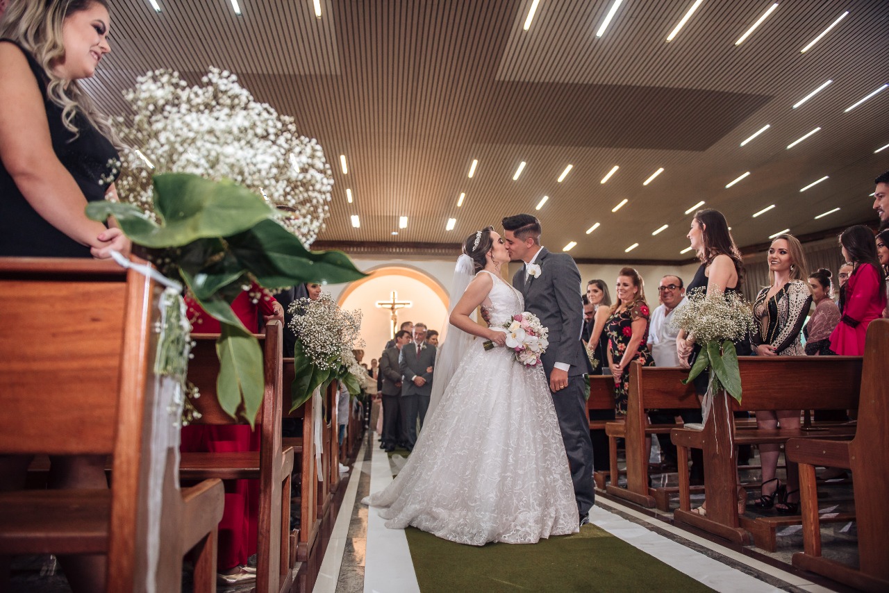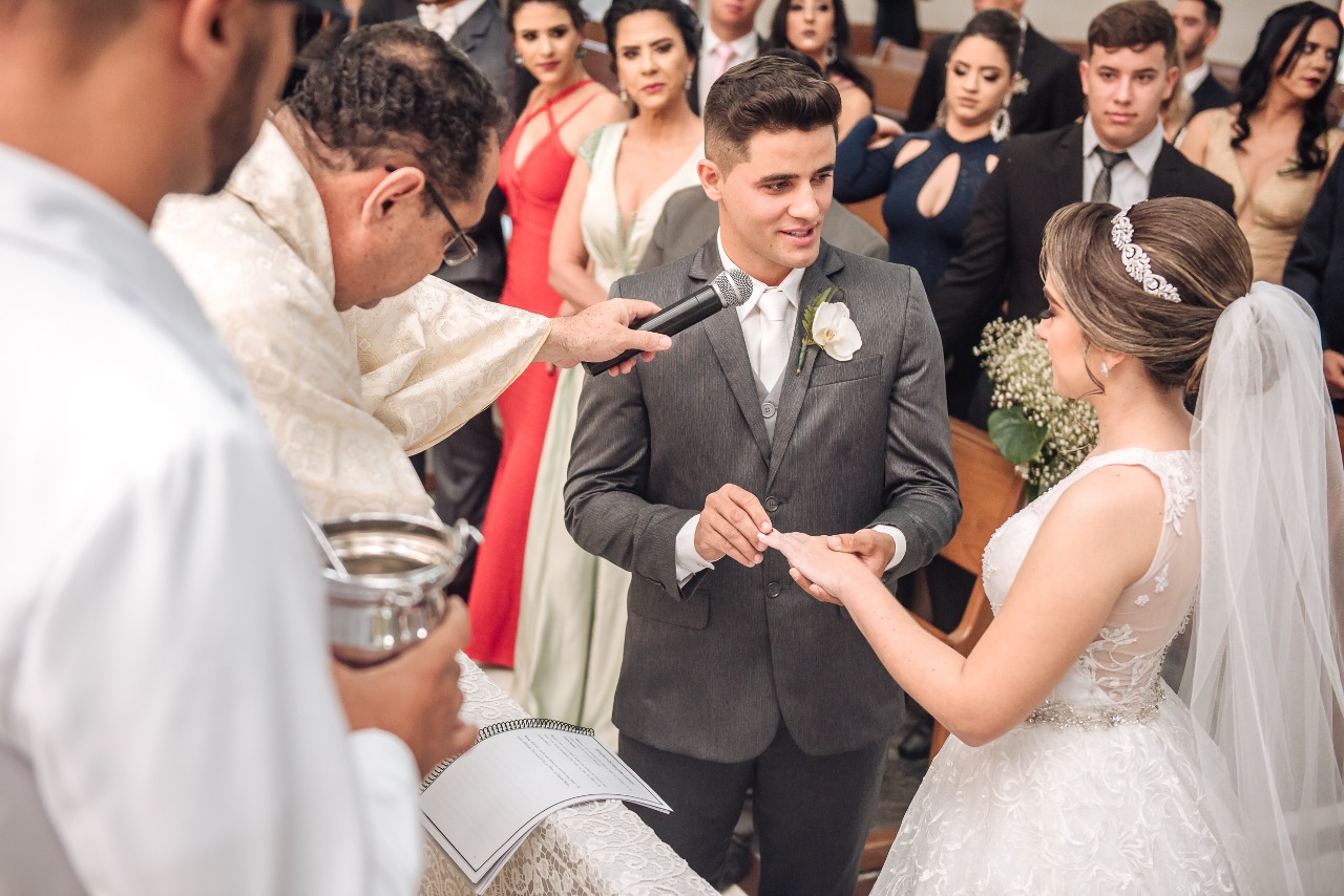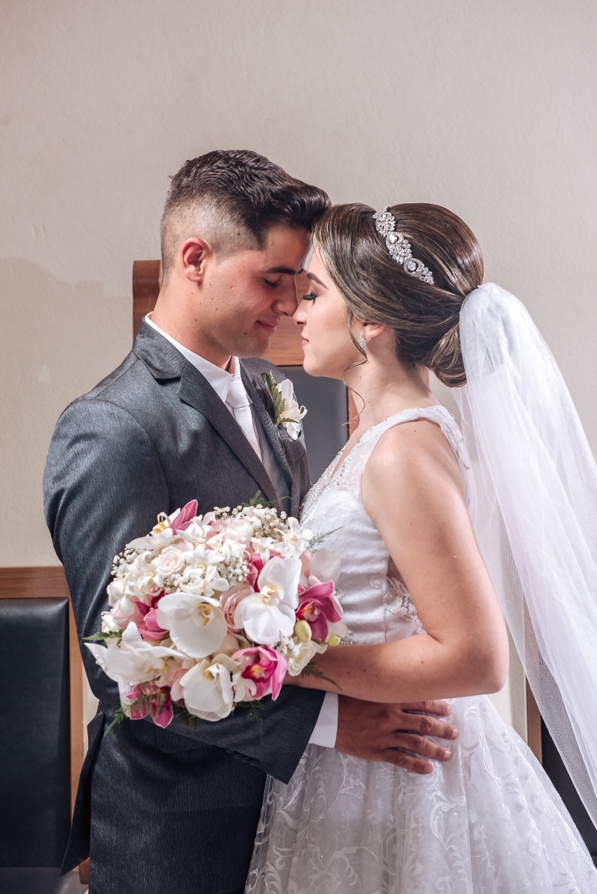 Anna Cláudia e Rafael escolheram a cidade de Santo Antônio do Monte, interior de Minas Gerais, para unir seus corações. Foi uma celebração que resplandeceu alegria e felicidade nos noivos, familiares e amigos. A noivinha escolheu com muito carinho o seu vestido na Zephora Alta Costura, o modelo é da nossa linha de designers internacionais, deixando ela como uma verdadeira rainha. O vestido com alças e transparência nas costas, de corpo acinturado com detalhe de cinto em pedrarias sofisticadas, corte em saia evasê ampla todo com aplicação de fio de soutache, inclusive na cauda. Um verdadeiro sonho!