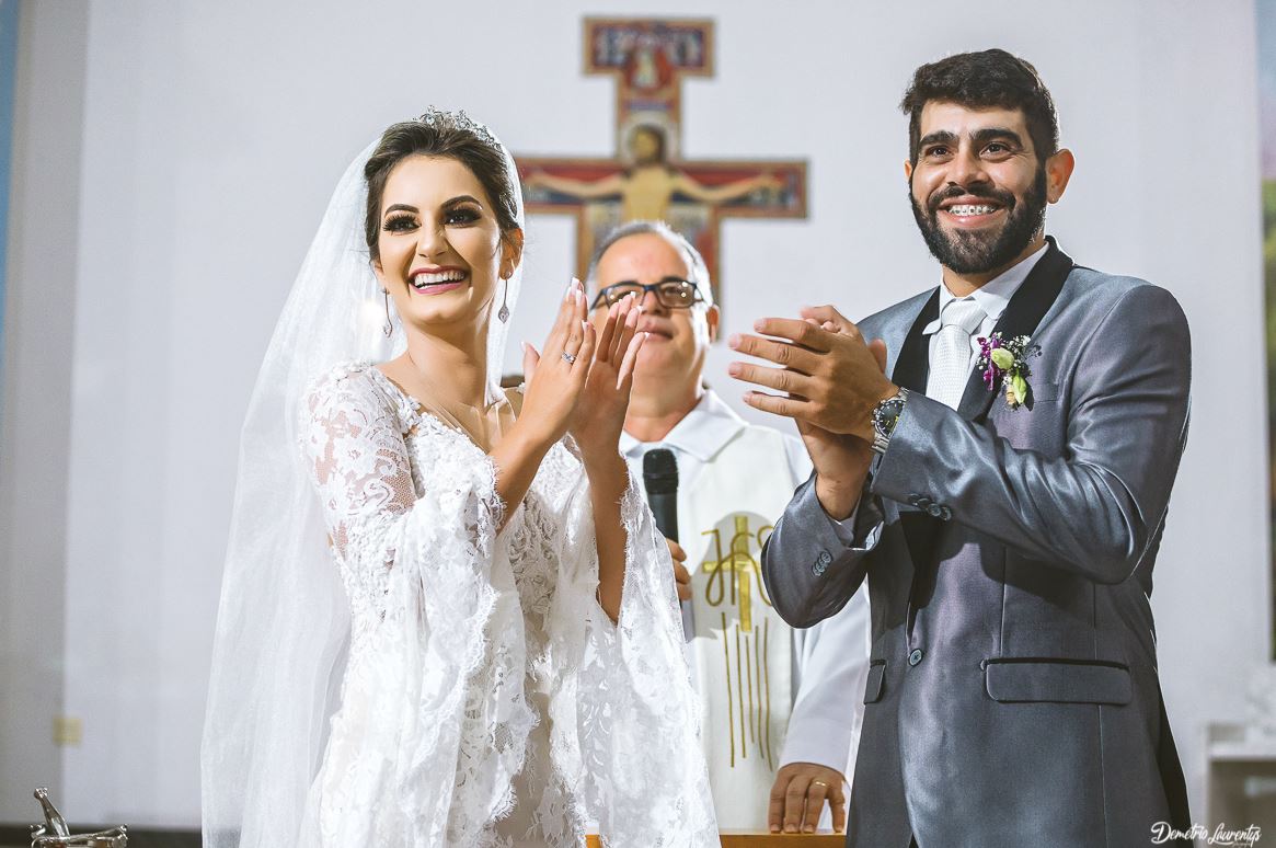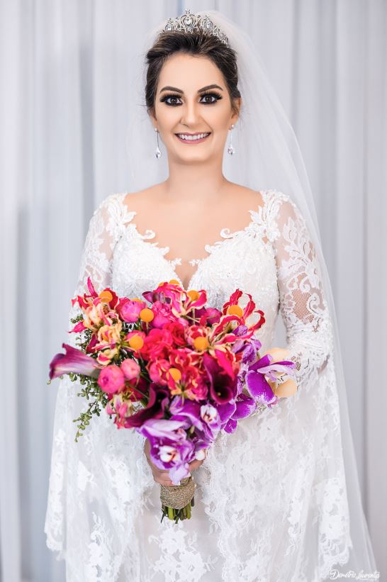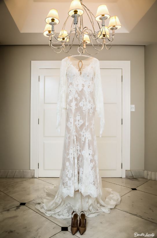 Os votos de união de Lorena e Henrique aconteceu na cidade do interior de Minas Gerais, Pará de Minas. Para o seu grande a noivinha, a estrela do dia, escolheu um belíssimo e moderno vestido na Zephora Alta Costura, da nossa linha de designers internacionais. O modelo na cor branca de corte sereia, mangas flares, decote “V” no colo que valoriza a noiva e um belíssimo recorte nas costas; todo confeccionado em renda francesa, o vestido é moderno e muito elegante deixando ainda mais linda a novinha.