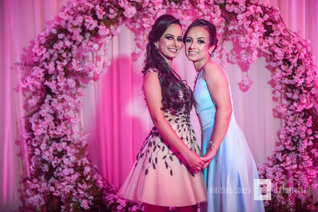 Ana Clara estava uma verdadeira princesa na comemoração dos seus 15 anos! Para viver seu sonho a debutante escolheu dois lindos modelos na Zephora Alta Costura que foram desenvolvidos no nosso ateliê e assinados pelo nosso diretor criativo Eduardo Malta. O primeiro modelo é curto de forro nude decote ombro a ombro e bordados delicados com finas pedrarias na cor uva. Já o segundo modelo é longo de saia princesa o decote também é ombro a ombro, a cor é rosê com bordados sobre tom.