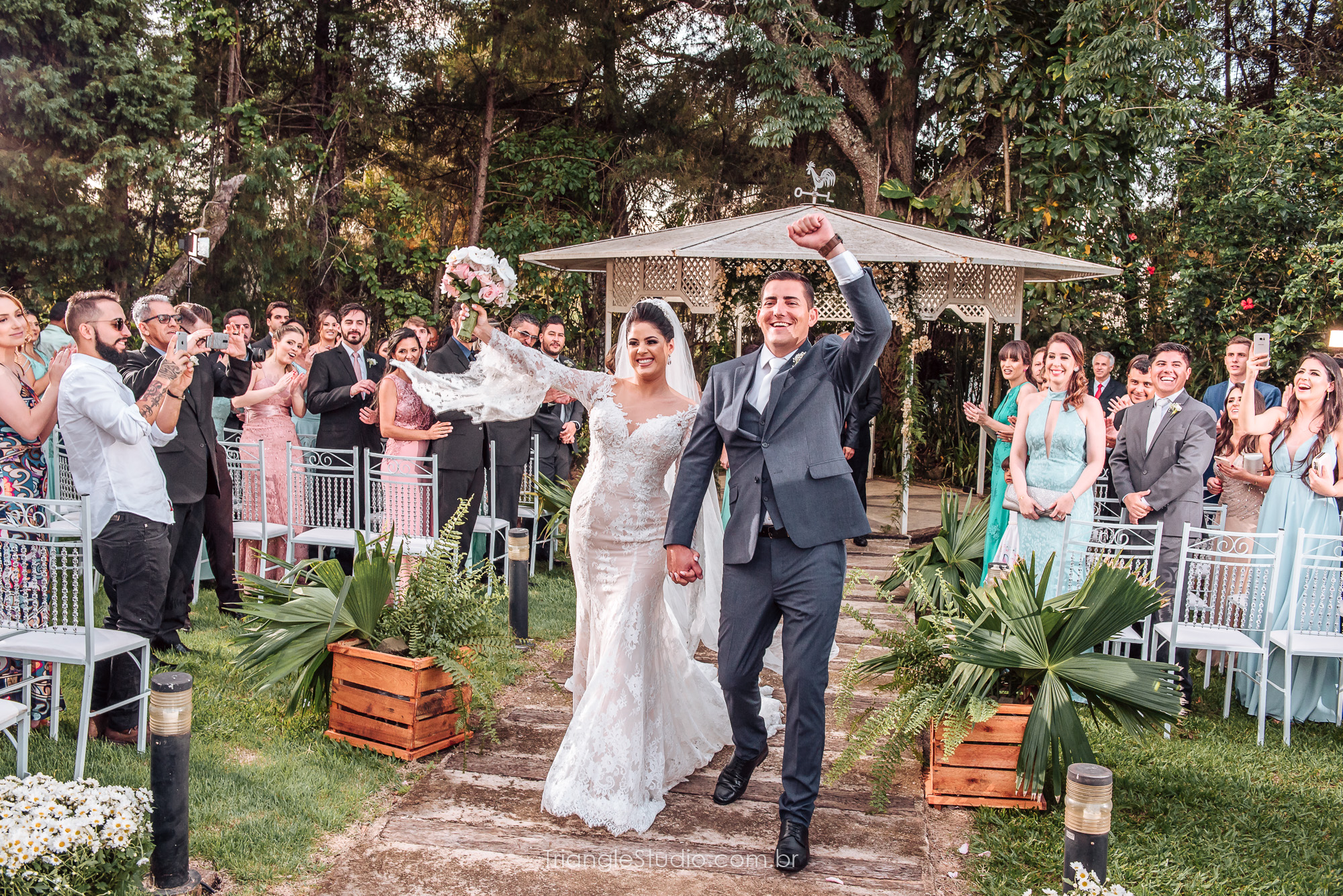 Casaram-se na cidade de Divinópolis, interior de Minas Gerais, os noivos Camila e Jaciano, a celebração do amor aconteceu em um sítio, ao lado d familiares e amigos. A noiva escolheu na Zephora Alta Costura um vestido moderno da nossa linha de designers internacionais, na cor branco, o modelo de magas flyre, com e decote em “V” no colo e também nas costas, é todo confeccionado em renda francesa, corte sereia, um vestido moderno e sofisticado para noivinhas que querem fugir do óbvio. Para compor o visual moderno e romântico a noivinha, também escolheu na Zephora os lindos acessórios.