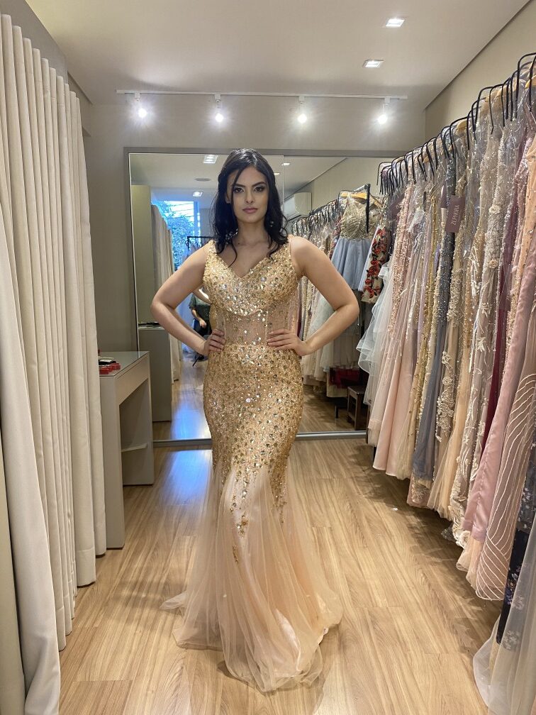 - Os vestidos de festa vão da numeração 38 a 48.
