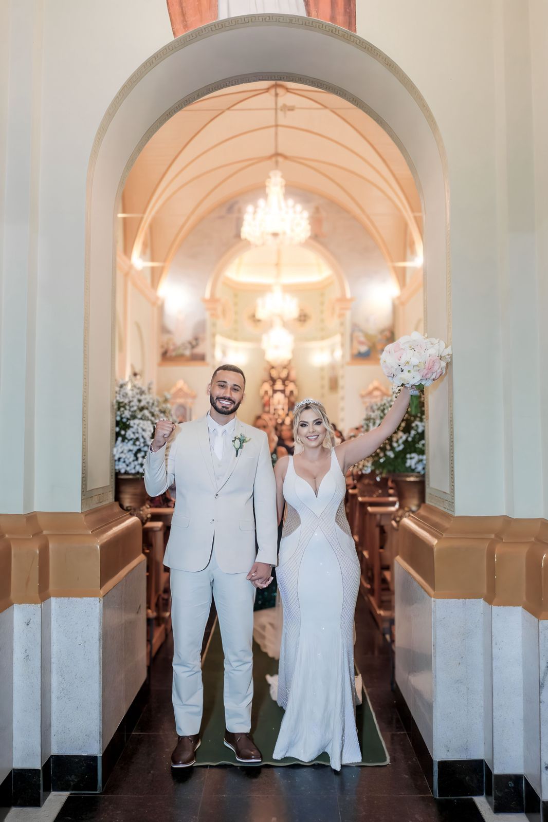 Nos registros no casamento e fotos pós conseguimos sentir no olhar de Fernanda sua satisfação e segurança, em estar vestida com um modelo que realçou ainda mais sua beleza.
